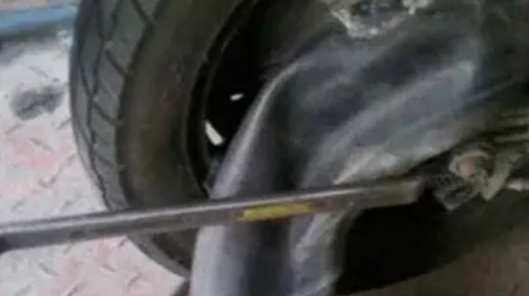 胎壁(侧面)被扎。胎壁非常薄,且在行驶中会不断屈伸,任何形式的修补都不可靠,存在严重安全隐患。
